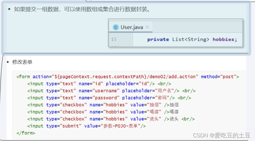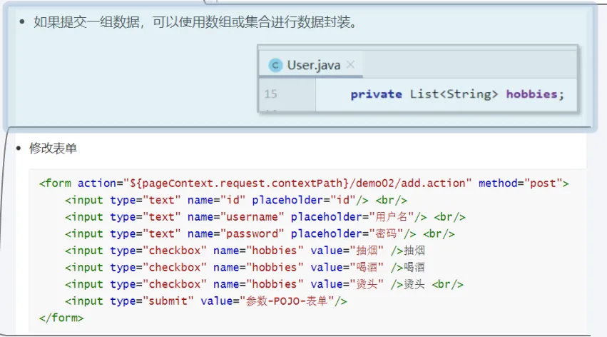通常在表单提交一组数据时我们会写一个JavaBean进行封装数据