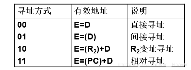 其中,OP-CODE为操作码, Rd为目的寄存器,D为位移量(正负均可),M为寻址方式,其定义如下: