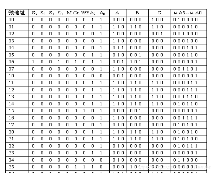 3)微程序代码表