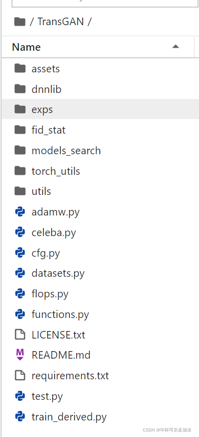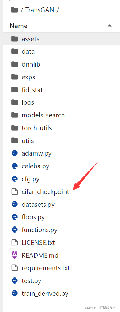 进入TransGAN:cd TransGAN,