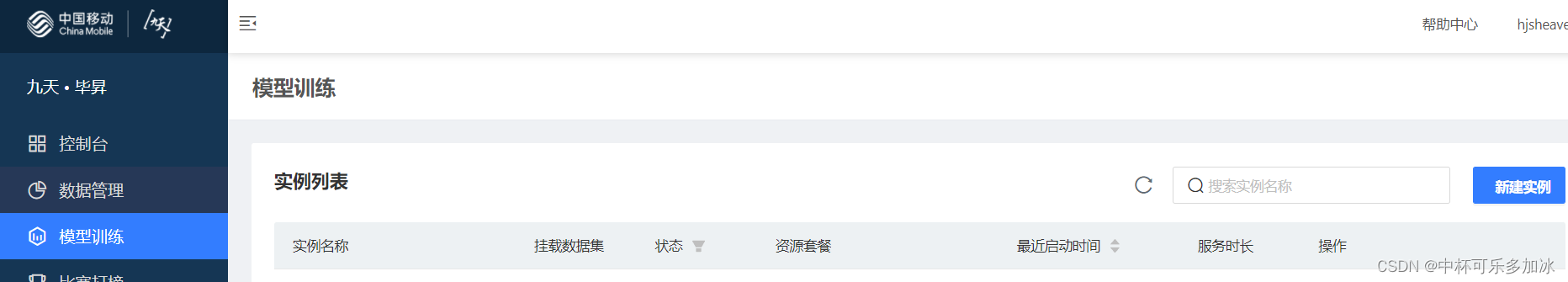 点击左侧导航栏,进入模型训练,点击新建实例