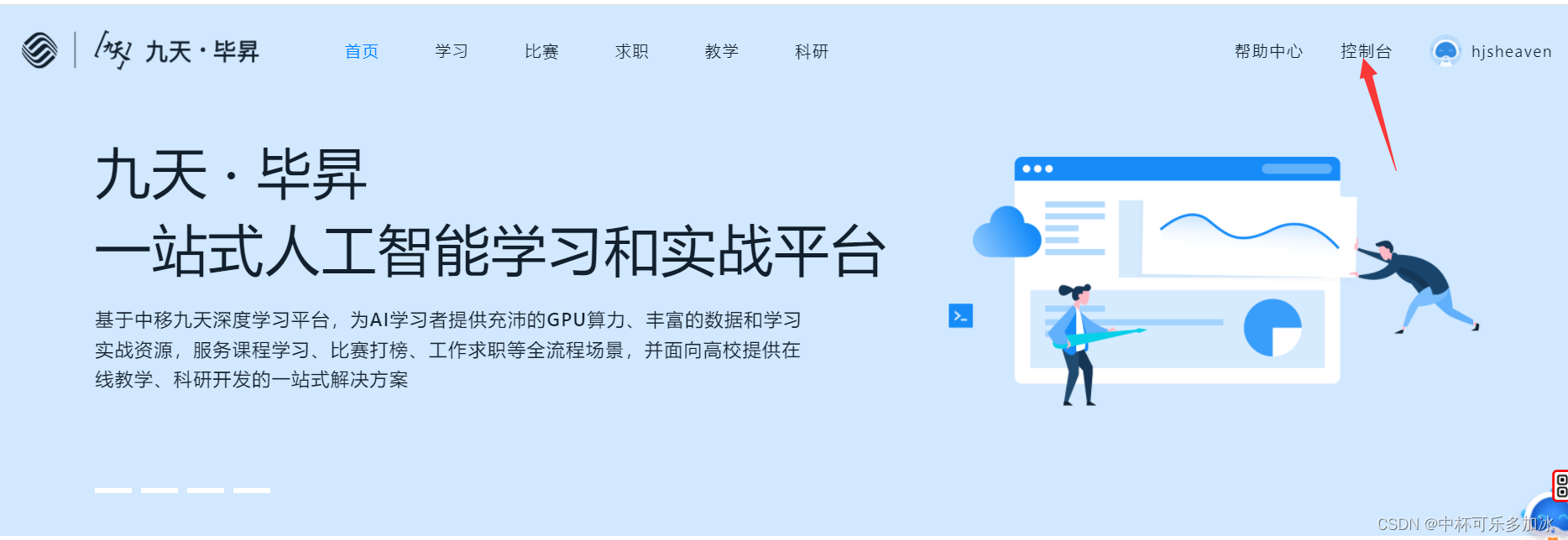 进入首页后,点击进入控制台: