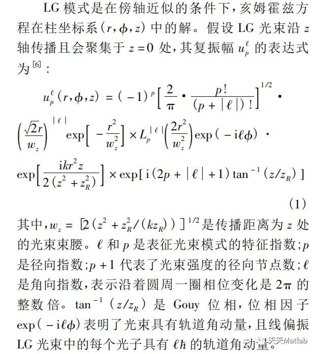 基于Matlab模拟拉盖尔 - 高斯( Laguerre-Gaussian,LG) 光束光场的光强和相位