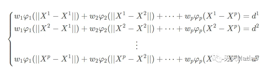 RBF神经网络输出层的激活函数采用线性函数,即可得到如下方程组: