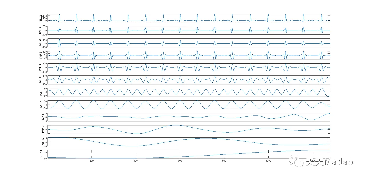 % Decomposition [3] of X, resulting in a matrix IMF containing 1 IMF per row, the