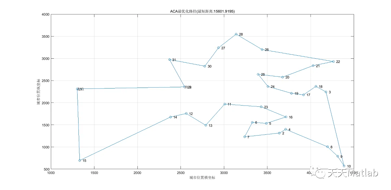 total_length(i)=total_length(i)+D(r(1),r(n));%最终得到第i只蚂蚁在本次循环中所走过的路径长度