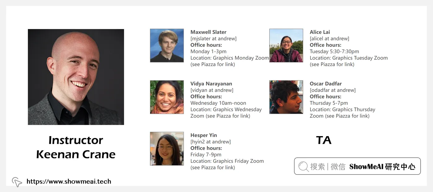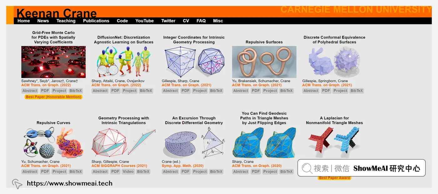 课程讲师 Keenan Crane,卡内基·梅隆大学(Carnegie Mellon University)副教授,是非线性分析中心的成员,也是Caltech的Google博士学位研究员和NSF职业奖的Packard研究员&获得者。