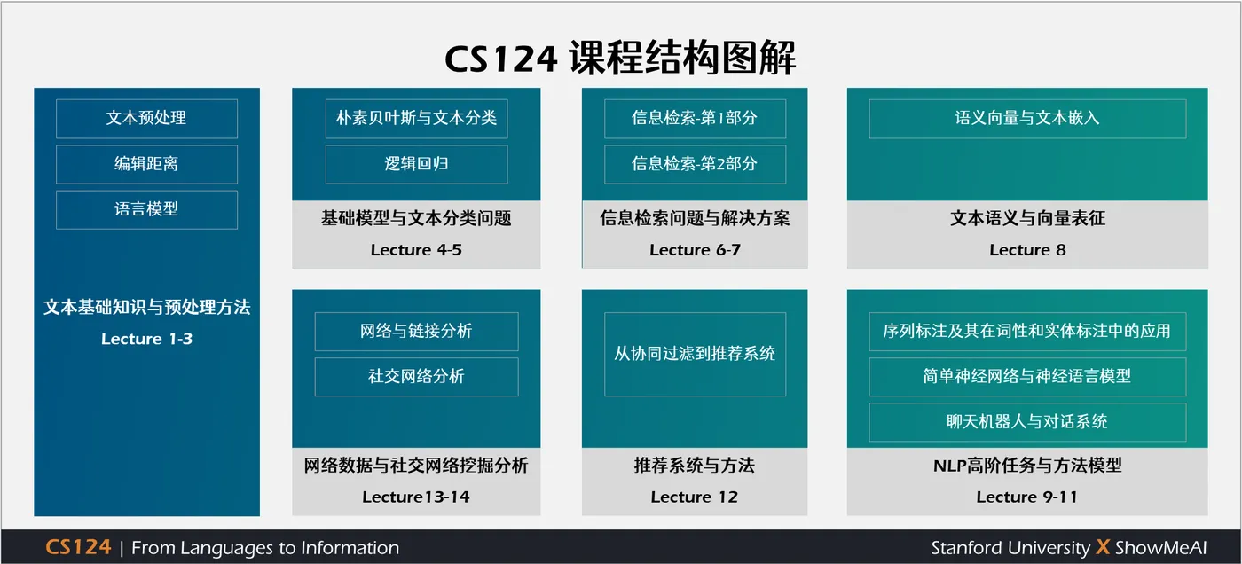 网络世界有大量以语言和社交网络形式存在的非结构化信息。学习如何使用神经网络和其他机器学习工具来理解这些信息,并通过语言形式与人类互动——如回答问题、提供建议等!斯坦福 CS124 就是一门聚焦文本类数据与信息挖掘应用的课程。