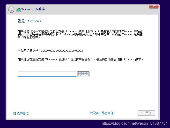 这里需要输入激活码,直接点击我没有产品密钥,跳过激活步骤;