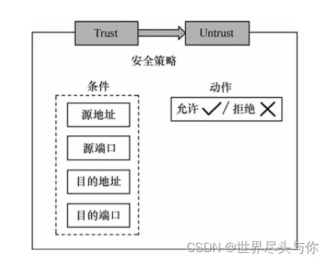 条件。检查报文的依据,防火墙将报文中携带的信息与条件逐一对比,以此来判断报文是否匹配。