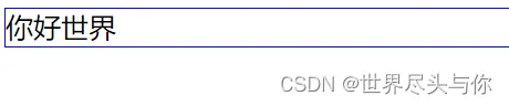 <!DOCTYPE html> <html> <head> <meta charset="utf-8" /> <title></title> <style type="text/css"> div { border: 1px solid blue; } </style> </head> <body> <div>你好世界</div> </body> </html>