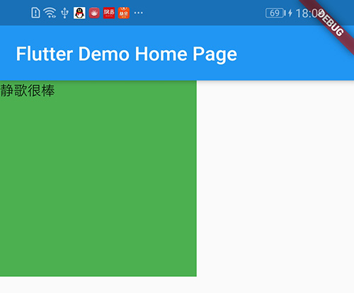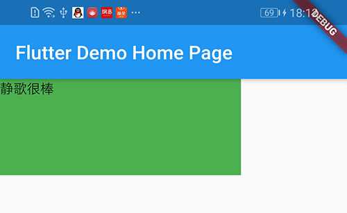 body: Container( color: Colors.green, child: new Text("静歌很棒",), constraints: BoxConstraints.expand(width: 250.0,height: 100.0), margin: EdgeInsets.only(top: 60.0,left: 60.0), padding: EdgeInsets.only(top: 60.0,left: 60.0), ),