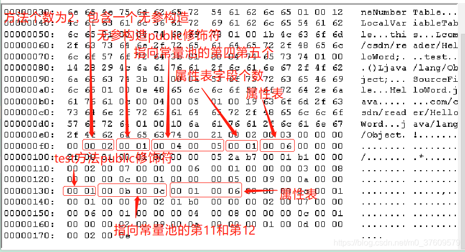 方法表集合与属性表集合的结构类似,是对方法的修饰符、返回类型、方法名、参数个数、参数类型、方法体的描述集合。