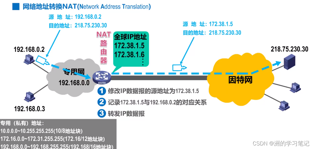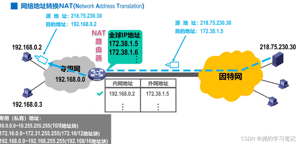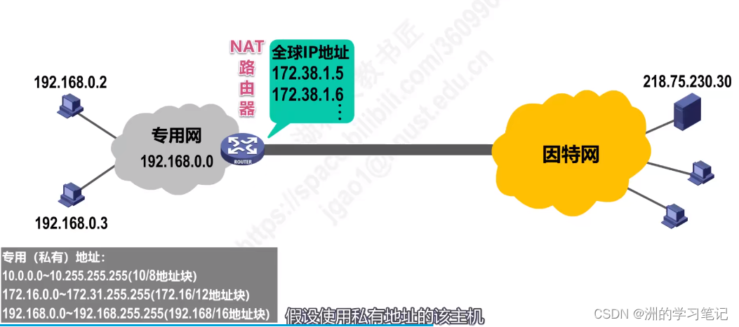 并且私有地址只能是本地使用,不可以作为对外的IP地址。