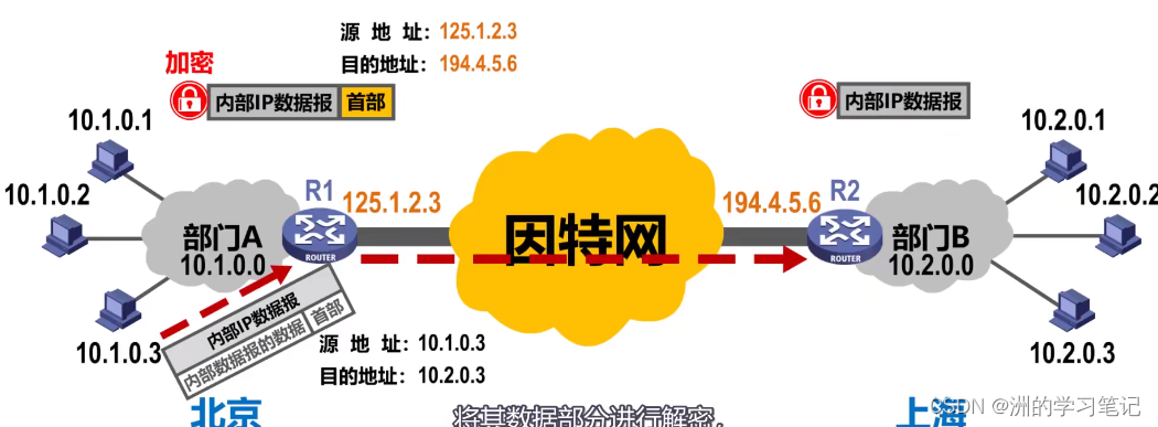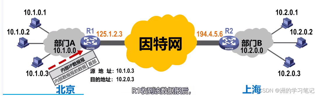 从逻辑上看,好像直接就只通过了点对点传输,因此 也叫作IP隧道技术。
