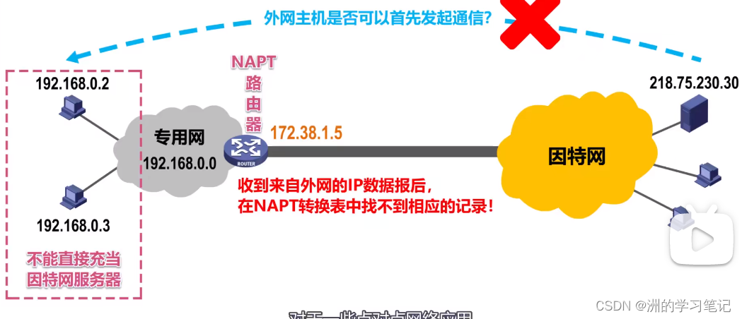 内网主机和外网主机的通信,不能由外网主机先发起!
