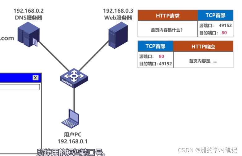 然后找一个暂时没有使用上的,比如说49152作为源端口,作为短暂端口号。