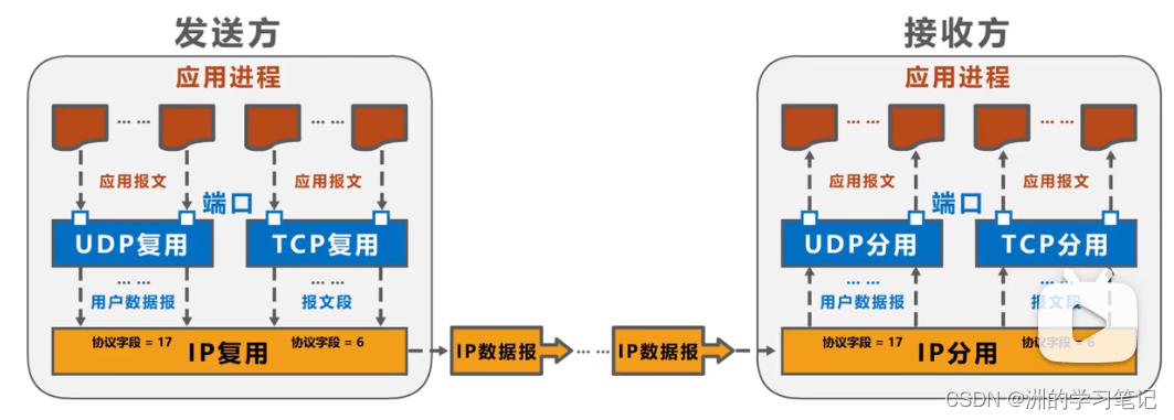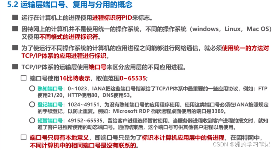 使用不同的端口号来区分不同的应用进程。