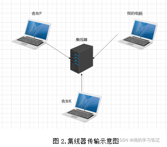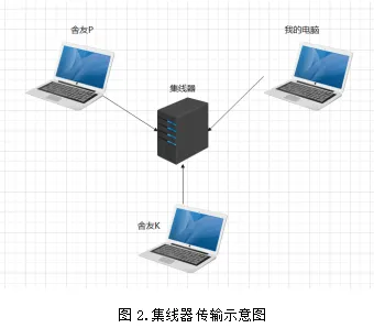 通过集线器,就可以解决三台电脑互传的问题了,即可将课件同时传输给舍友P和K了,如下图2所示。