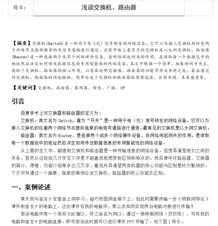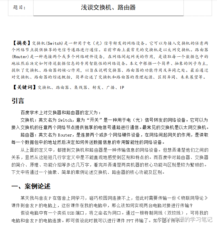 这是我大三上计网课程的课程论文,花了几天心思,确实能弄懂一些以前不懂的东西,计网其实挺有趣的,只要学进去了,还是比较有趣的。为什么选择这个题目呢,因为当时每周做实验,都是跟做路由器、交换机的会H3C仿真实验+交换机的实物实验,所以有些时候搞不懂原理,干脆直接课程论文写这个方面的东西。因为是课程论文,所以要求比较低,如果有不足请指正。