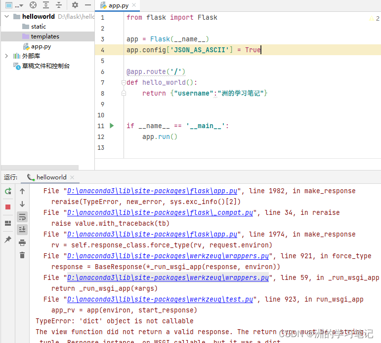 在使用字典接口时,发现出现了报错,不给我访问,查阅资料后应该是flask的版本太老了,需要进行更新。