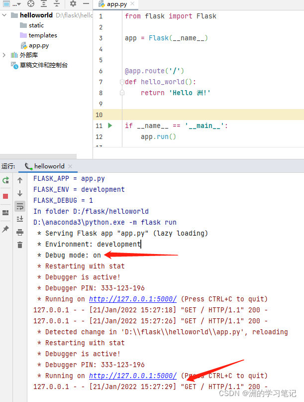 原本的debug是off模式,就是更改代码之后要重新点击运行代码才能更新项目。