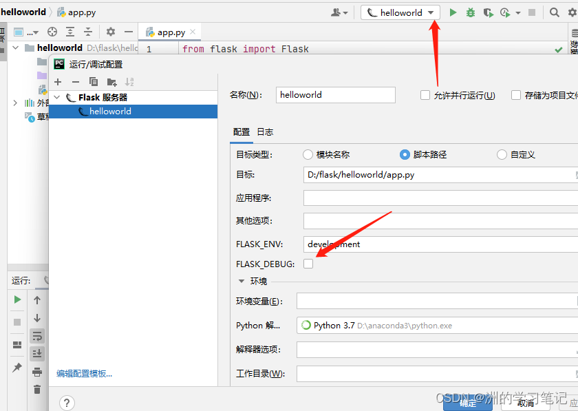 使用Pycharm中的创建项目:Flask,注意需要使用先前配置好的解释器。不要点击使用此工具新建环境!因为每当新建一个项目,导入的包如果是新建环境可能需要重新下载。所以直接使用配置好的解释器即可。