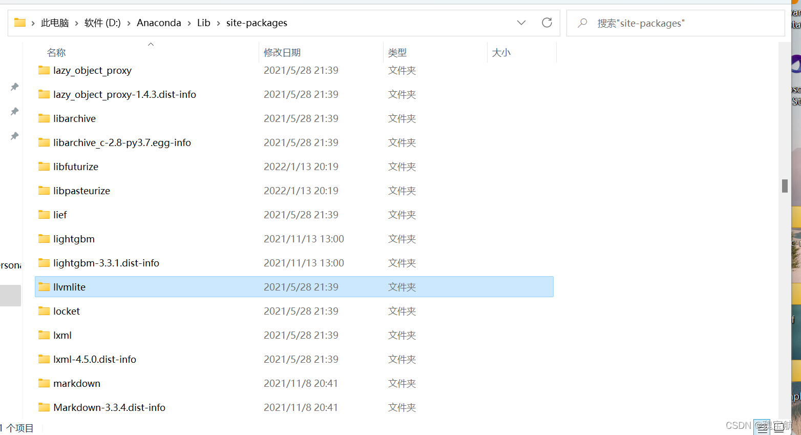 我在安装umap库时需要下载llvmlte,但是旧版本文件需要删除,但是pip无法完全卸载,所以我需要手动删除该文件,如下图: