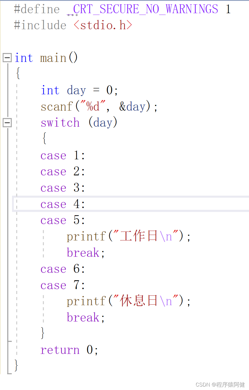 switch语句也是一种分支语句,常用于多分支,允许嵌套使用