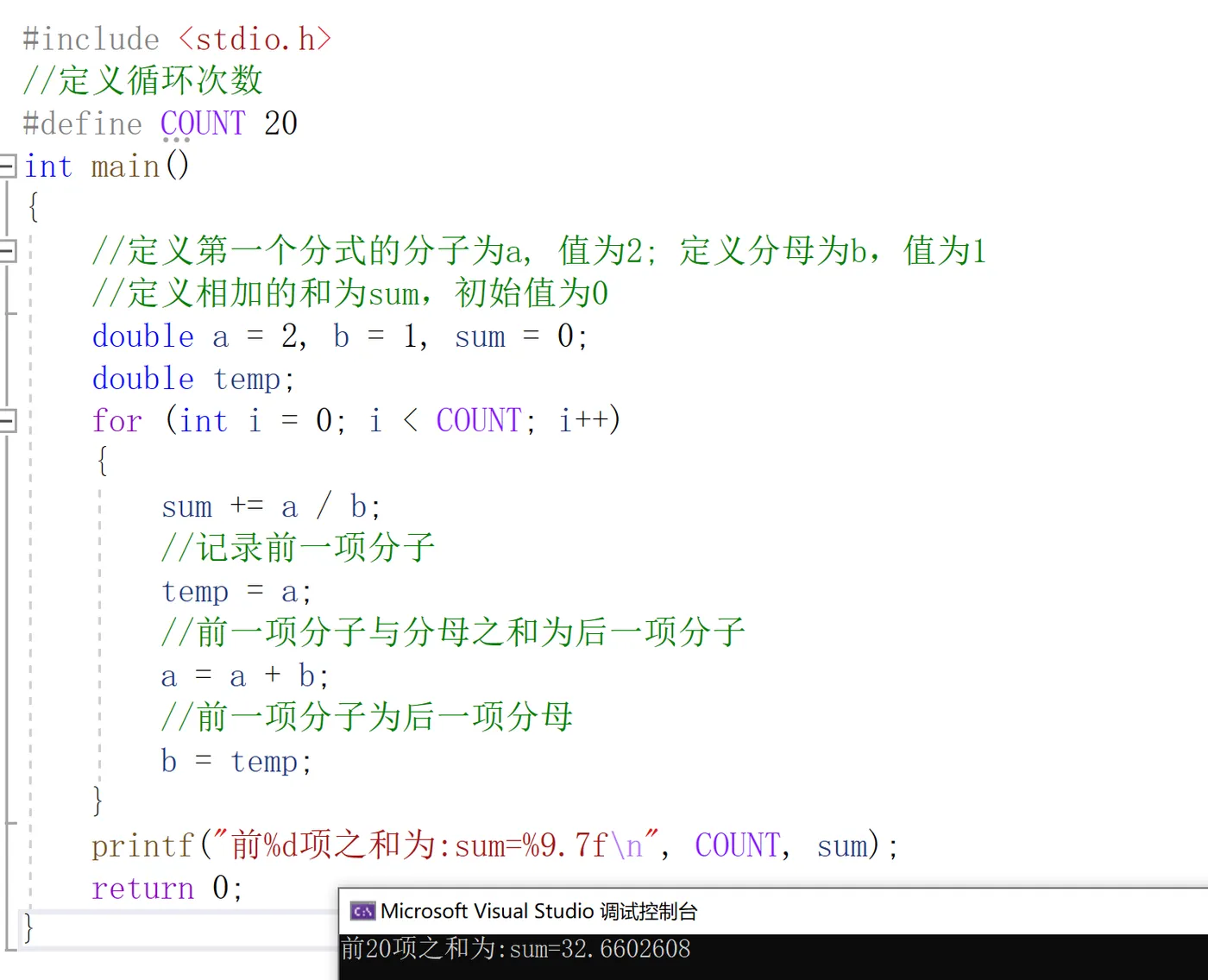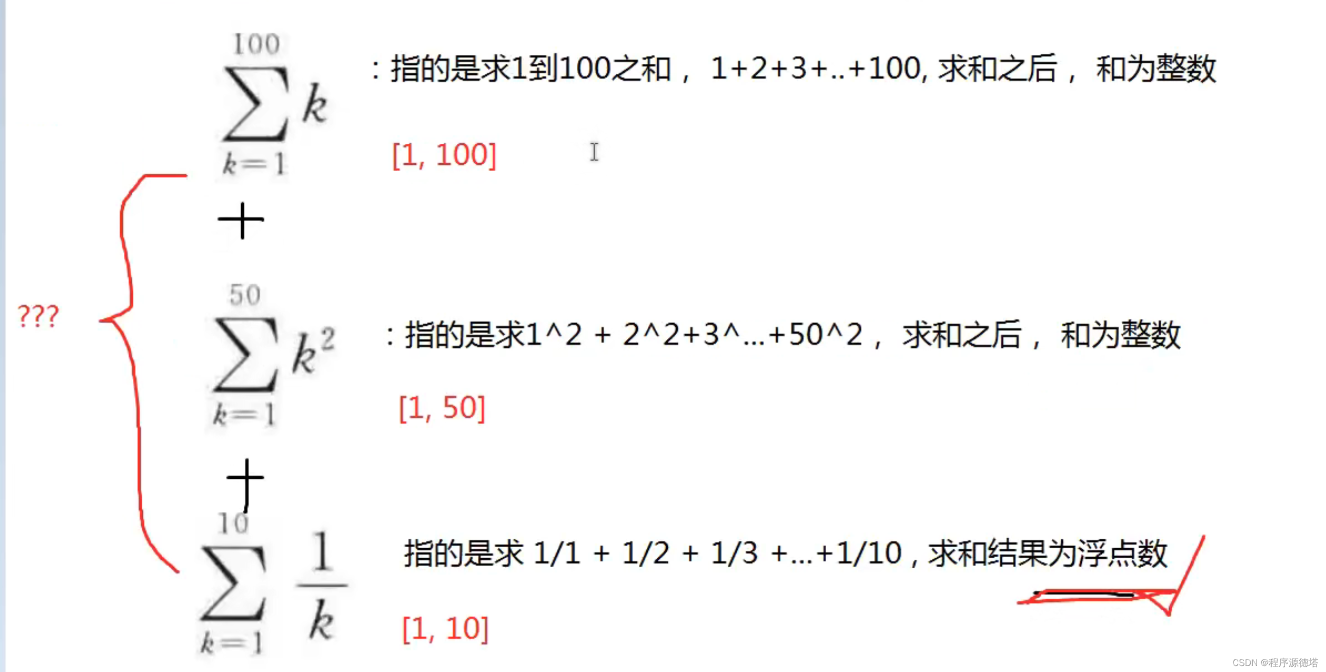 综上所述:求和结果不是整数,所以定义求和变量是需要定义为带有精度的变量 double