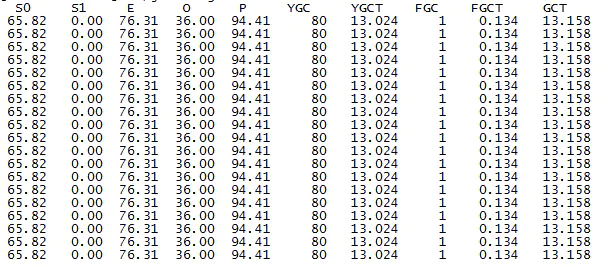 即会每500毫秒一次显示进程号为31479的java进程的GC情况,如下图: