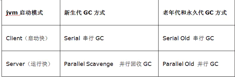 ØClient、Server模式默认收集器