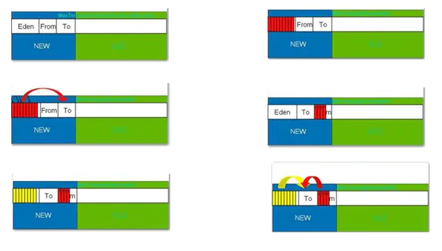 GC,其中一个为From区,一个为To区。含义为Eden和From的幸存者被拷贝到To区,To区会作为下一次GC的From区