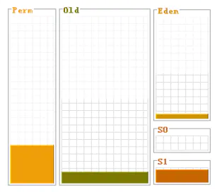 Old: Eden和S区是新生代(young区)的一部分,相对地,在幸存区经历N次,屠杀后仍然存活的话,会被拷贝到old区,进入old区后,ScavengeGC将不在检查对象有效性,需要触发FullGC来回收对象(详见下图)。