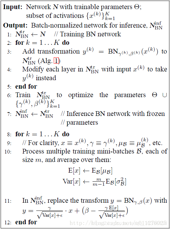 BN主要时对网络中间的每层进行归一化处理,并且使用变换重构(Batch Normalizing Transform)保证每层所提取的特征分布不会被破坏,详细参见Batch Normalization: Accelerating Deep Network Training by Reducing Internal Covariate Shift。该算法主要如下: