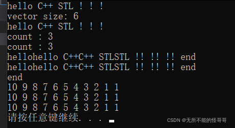 通过自定义的谓词,我们可以实现自己的数据类型的排序,这就是sort算法为我们提供的统一个排序模型。