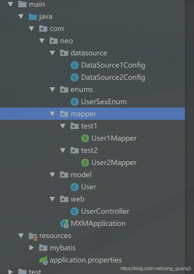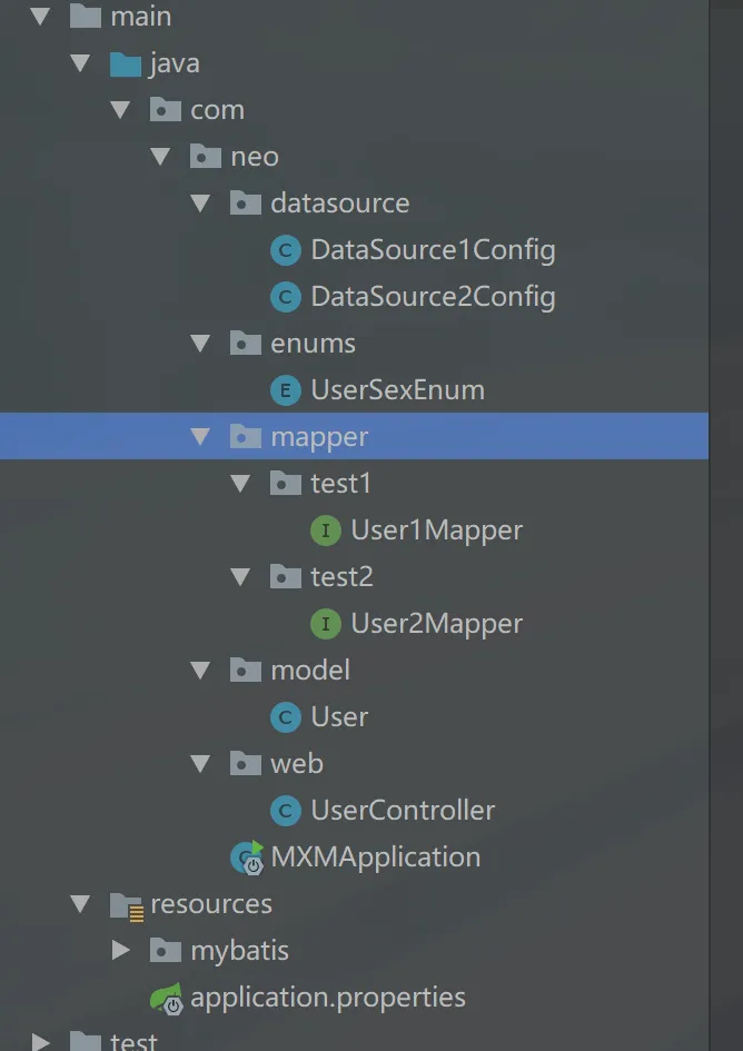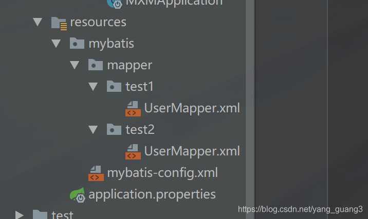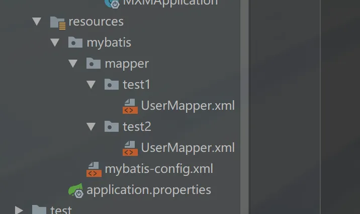 test1和test2下的配置文件UserMapper.xml内容相同,如下: