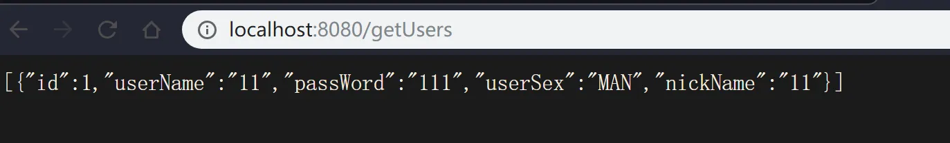 测试主库:在浏览器中输入:http://localhost:8080/getUsers