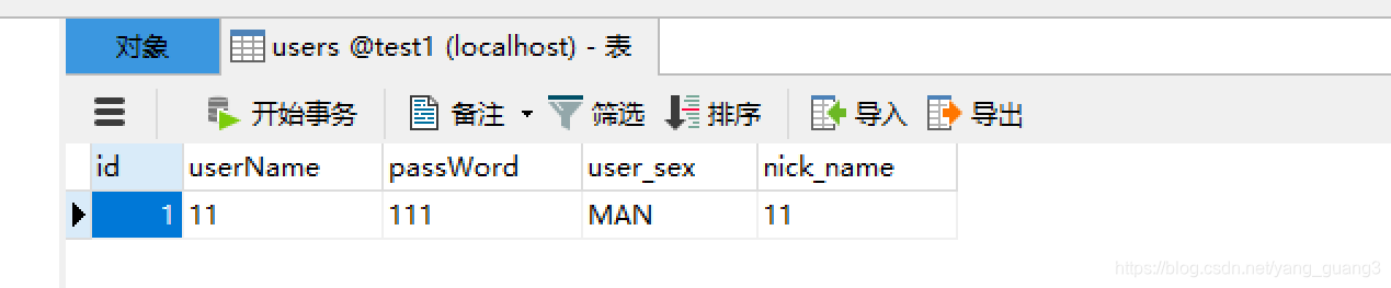在添加数据的时候,由于user_sex字段使用到了枚举,所以只能添加MAN或WOMAN。