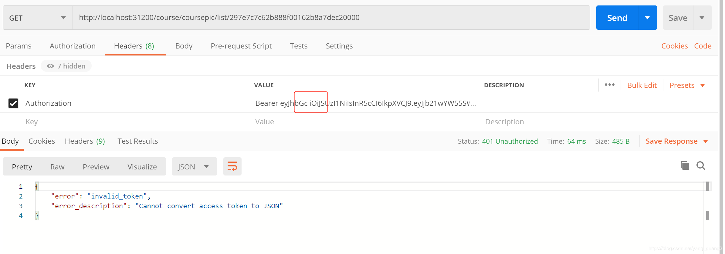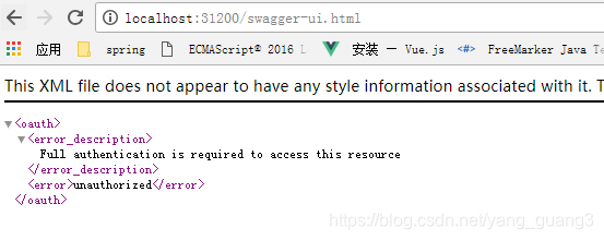 当课程管理加了授权之后再访问swagger-ui则报错: