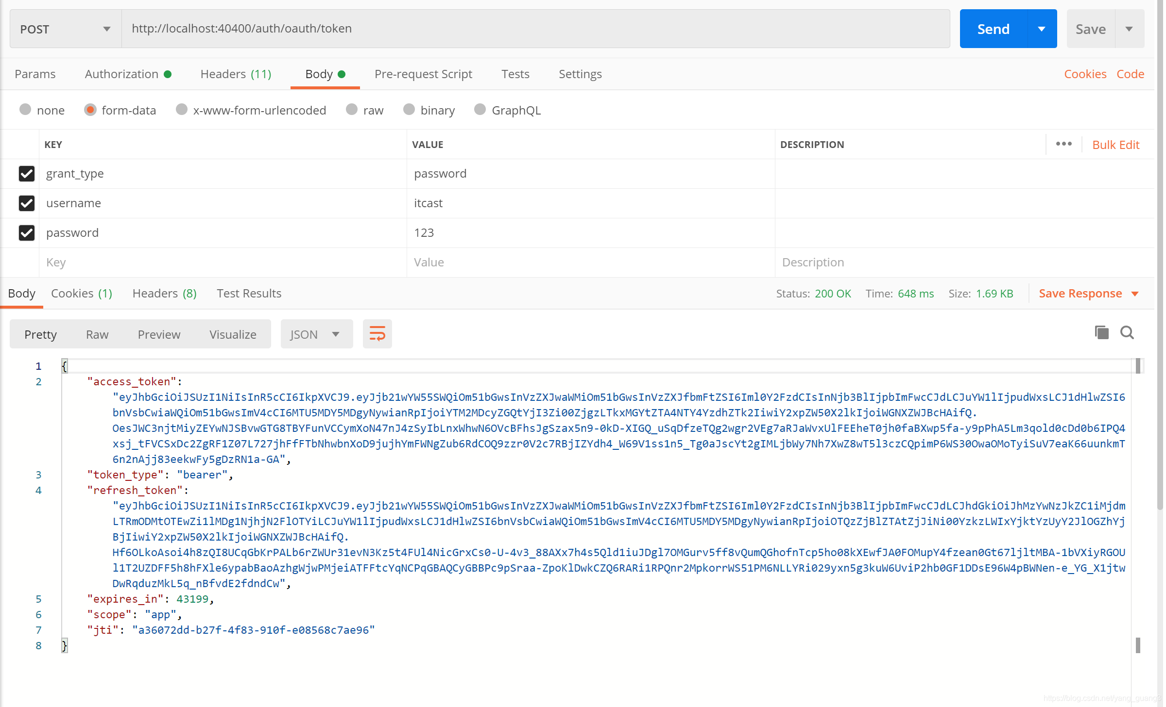 client_id:客户端id,和授权配置类oauth_client_details中设置的客户端id一致
