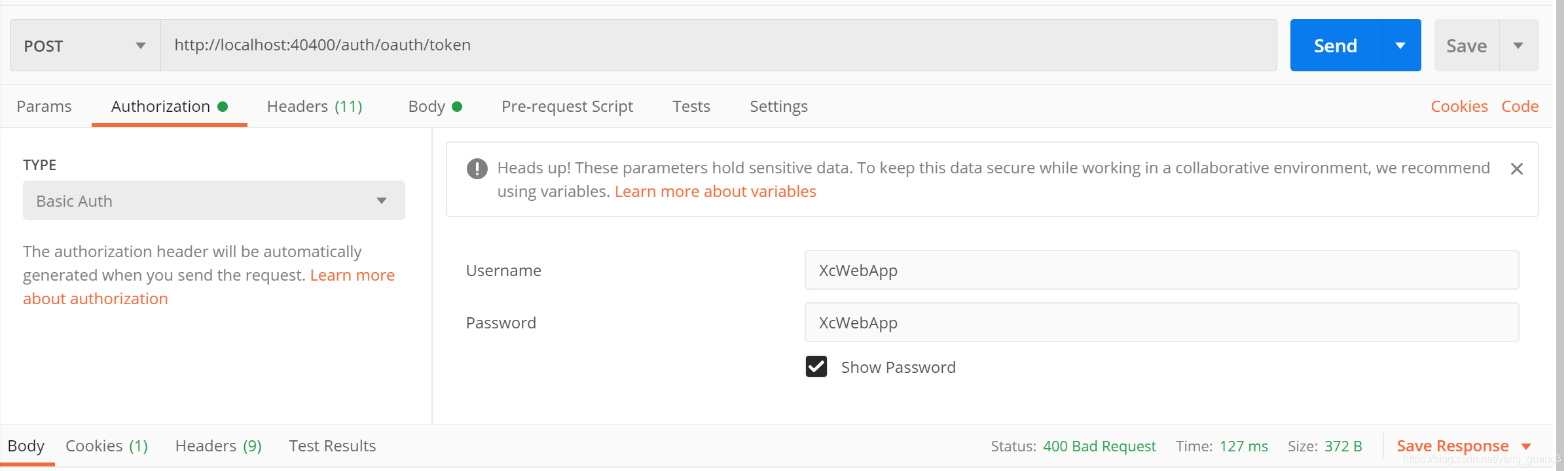 localhost:40400/auth/oauth/authorize? client_id=XcWebApp&response_type=code&scop=app&redirect_uri=http://localhost