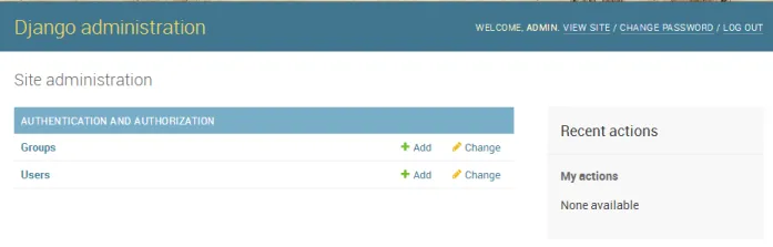 可看到groups和users,这是由django.contrib.auth提供的,django的认证框架。