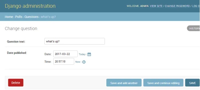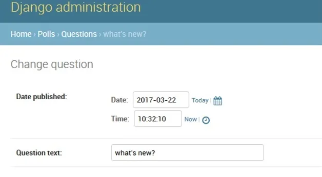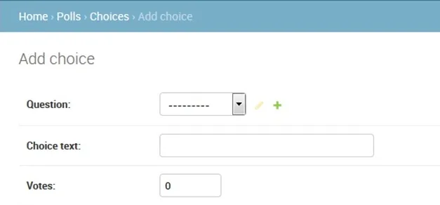 那个form中,Question field是一个select box,包含数据库中的每个问题。Django知道ForeignKey应该在<select> box中出现。