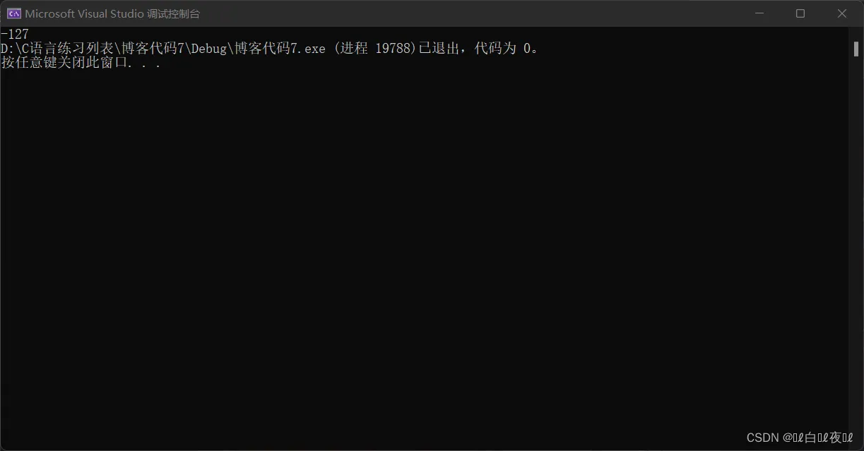 但是数据类型char只有个8个比特位,所以我们的结果有点 ‘ 异常 ’ :