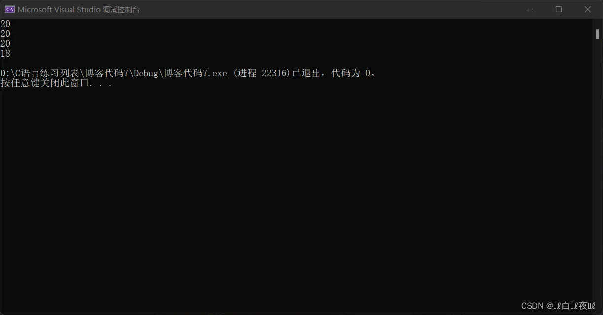 至于为什么第二个结果为什么是20不是18,因为我们之前说过,set_age1这个函数里面的参数只是一份临时拷贝(如果不懂可以去看看我的函数栈帧的创建与销毁)。