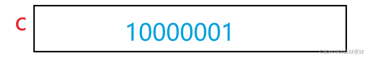 c变成这样之后,我们又要存入char类型的变量c,所以又会变成8个比特位的内存。也就是说char c里面是这样的: