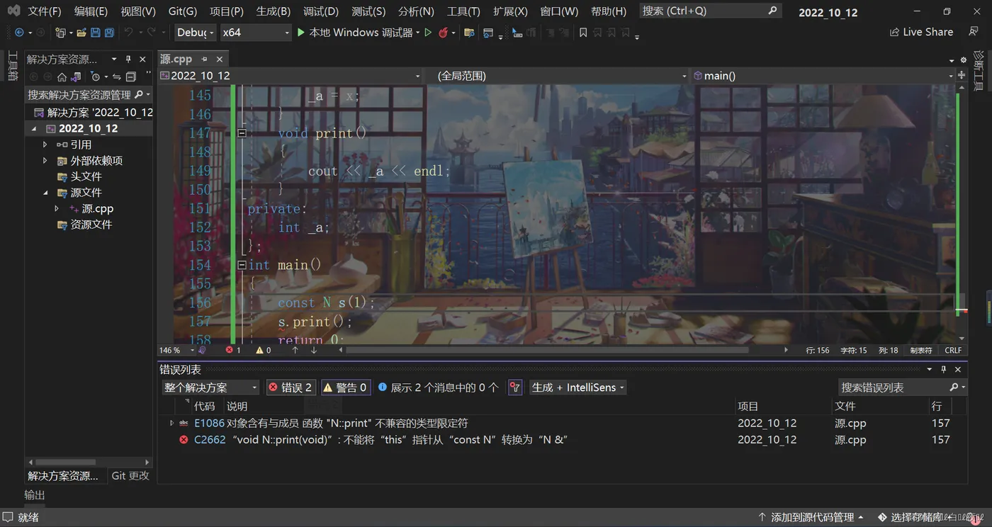 在const属性的对象当中调用成员函数,因为成员函数有隐藏的this指针,格式是 N* const this,意思是this指针指向的位置不能改变,而加了const 的对象s是const N* this,不允许修改this指针指向的内容。