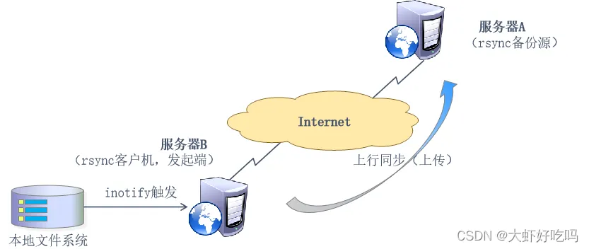 将notify机制与rsync工具相结合,可以实现触发式备份(实时同步),只要原始位置的文档发生变化,则立即启动增量备份操作,否则处于静默等待状态,这样就避免了按固定周期备份时的延迟性、周期过密等问题。