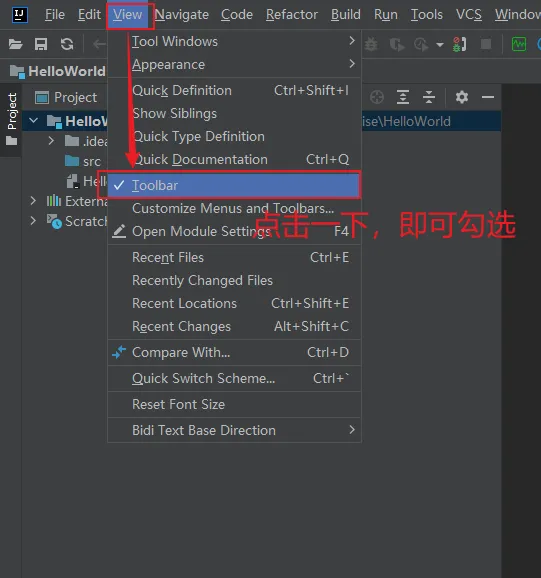 接着在类 HelloWorld 里声明主方法,输出 helloworld,完成测试: